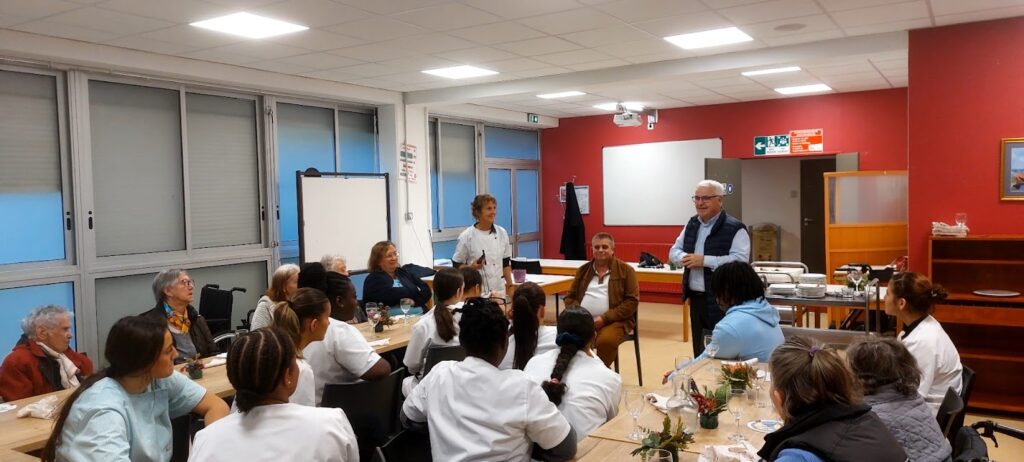 Les élèves de terminale CAP Grand Âge ont accueilli un groupe de résidents d’un EHPAD. Visite des labos boulangerie, pâtisserie et atelier Mode suivi d’un goûter convivial où sourires et échanges ont été nombreux !