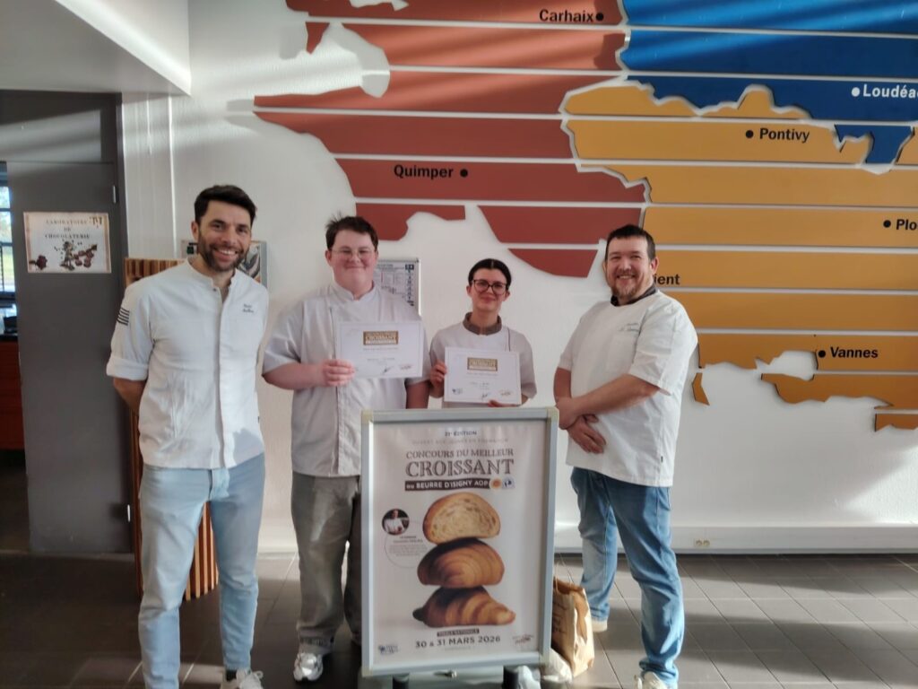 Enora Dufouil et Gildwen Bertelot (Terminale boulanger-pâtissier) ont participé au concours régional du meilleur croissant au beurre d’Isigny, organisé ce samedi 10 janvier 2026 au CFA de Ploufragan, dans des conditions exigeantes et devant un jury de professionnels.